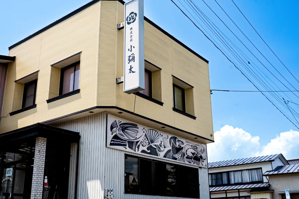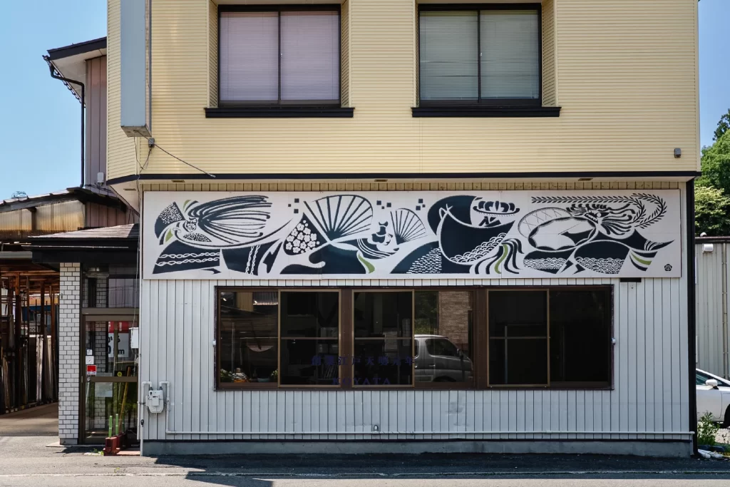グラフィックデザイン 2025.08株式会社小彌太 社屋看板#グラフィック岩手県花巻市の染物屋、株式会社小彌太の社屋正面の看板のグラフィック。染物屋と関わりが深く、新しい事業として取り組む郷土芸能を躍動感あるタッチのイラストレーションで制作しました。