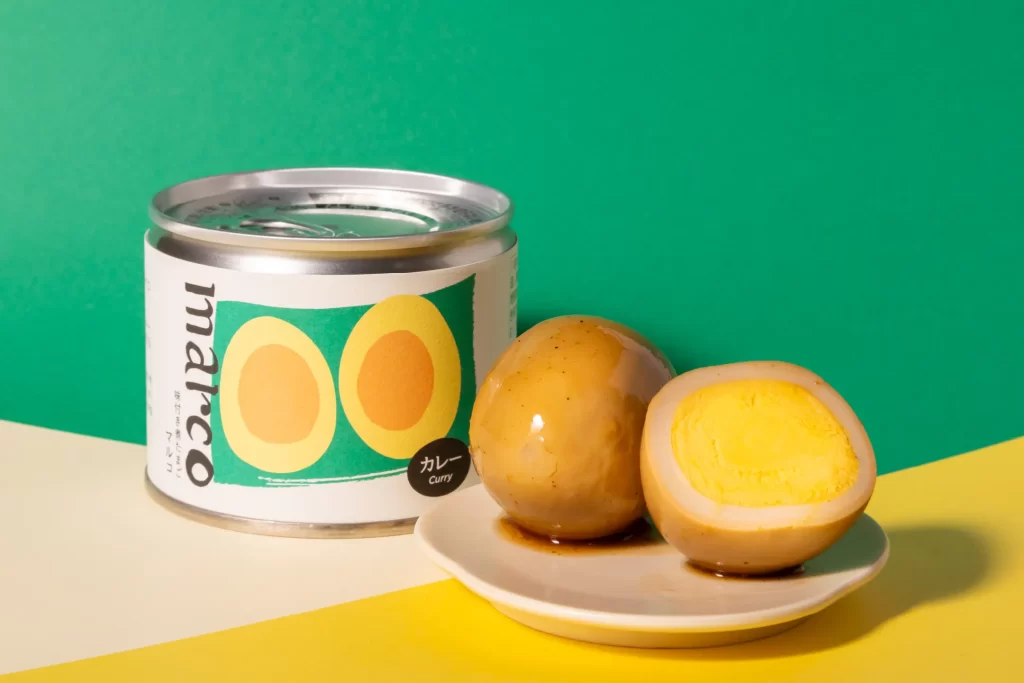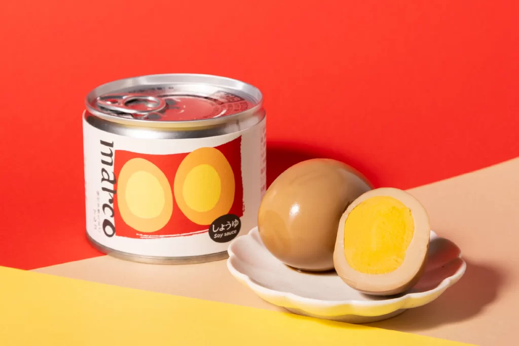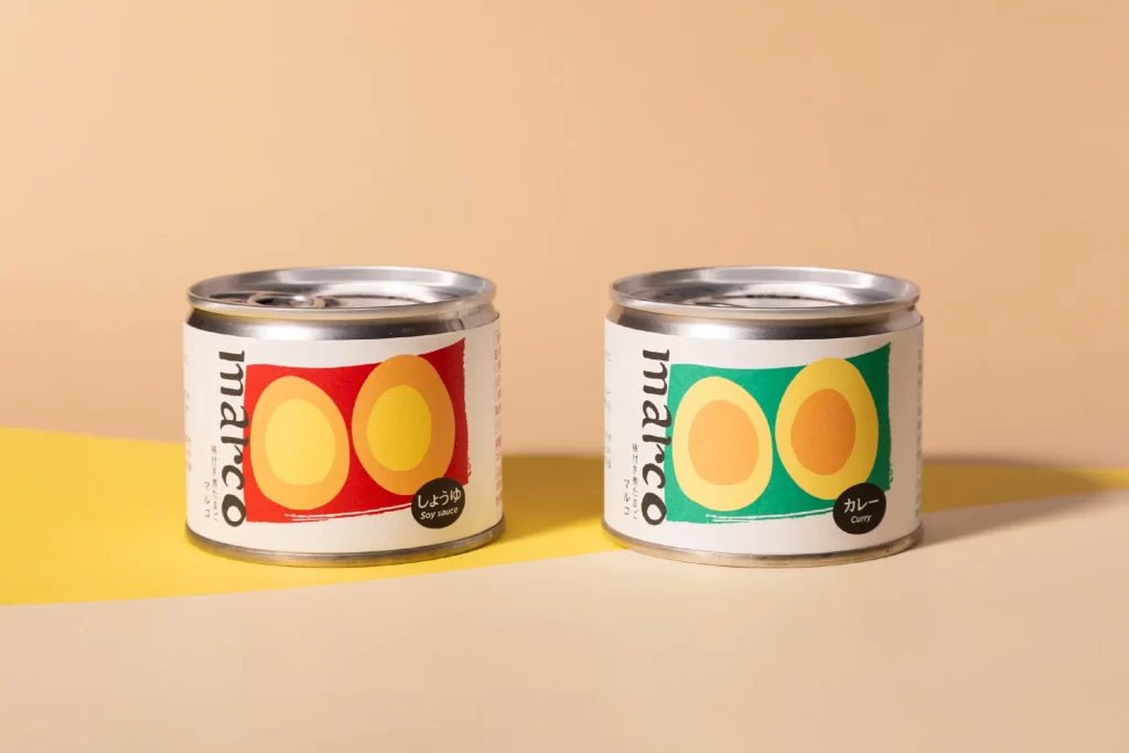 味付け煮たまごの缶詰商品「marco」のパッケージデザインとネーミングを制作しました。