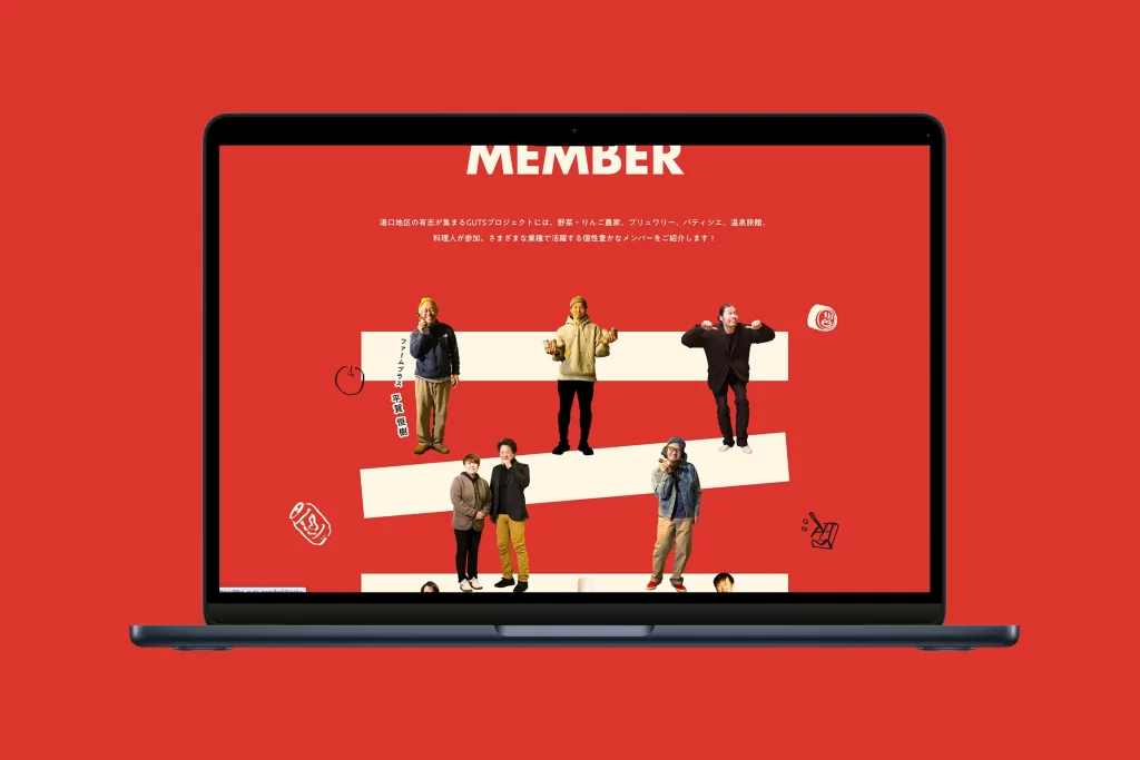 花巻市湯口地区の魅力を発信する「GUTSプロジェクト」のウェブサイトを制作しました。GUTSプロジェクトは地元の農家、ブリュワリー、パティシエ、温泉旅館、料理人など様々な業種のメンバーが集う「ゆぐちーな協議会」が運営するプロジェクト。